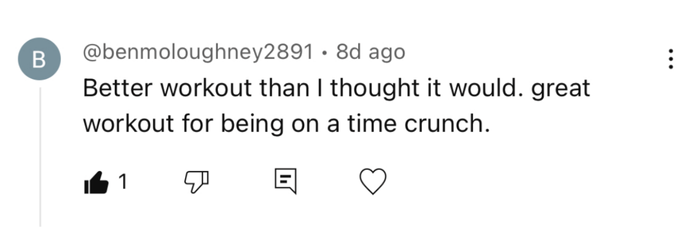 • Each workout is 15 minutes or less