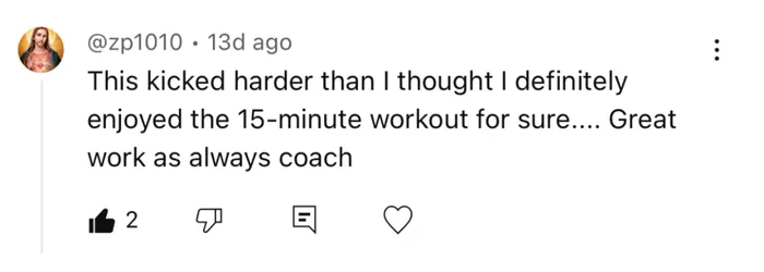 Every workout is 15 minutes or less. Perfect for mornings, lunch breaks, or anytime you’ve got a small window to move.