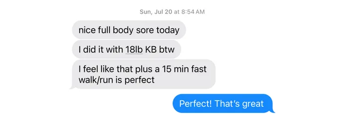 That’s a good thing! You can start using a slightly heavier kettlebell, repeat workouts with more intensity, or combine 2 workouts back-to-back for a longer session.